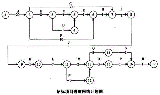 </p><p> 注:图中所标注时间为日历日,各环节时间满足相关要求,其中:</p><p> A.编制招标文件,发布招标公告;</p><p> B.发售招标文件;</p><p> C.组织一批投标人踏勘现场;</p><p> D.组织另一批投标人踏勘现场;</p><p> E.组织投标预备会;</p><p> F.投标人提出招标文件需要澄清的问题;</p><p> G.投标人编写和提交投标文件;</p><p> H.发出招标文件澄清与修改;</p><p> I.投标人和行政监督机构审查投标人营业执照和安全生产许可证,据此决定进入开标的投标文件;</p><p> J.开标;</p><p> K.评标委员会制定评标办法;</p><p> L.考查各投标人,将考查结果作为评标依据;</p><p> M.评标;</p><p> N.招标人向投标人发出通知,要求投标人进一步澄清、说明有关事项;</p><p> O.公示中标结果;</p><p> P.发出中标通知书;</p><p> Q.就合同非实质性内容进行谈判;</p><p> R.订立合同;</p><p> S.中标人进场建设。</p><p> 问题:</p><p> (1)按照招标人编制的网络计划,确定其关键路径,并确定按照该计划完成全部招标工作所需的时间。</p><p> (2)逐一指出上述网络计划中的不妥之处,说明理由。</p>