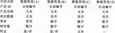 产品数据表界面如图所示,与数据表结构对应的是( )。