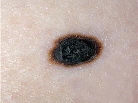 最易发生恶变的色素痣(见图)是 ( ) A.交界痣 B.毛痣 C.皮内痣 D.雀斑样色素痣 E.复合痣