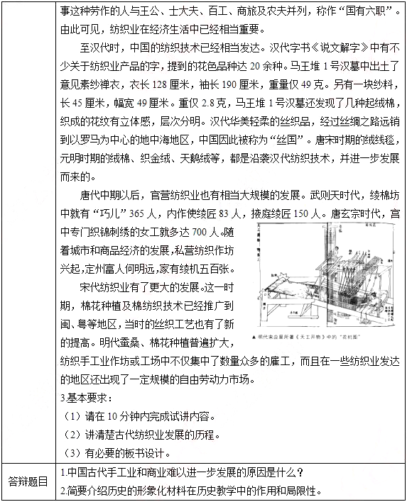【答辩题目解析】1.中国古代手工业和商业难以进一步发展的原因是什么?2.简要历史的形象化材料在历史教学中的作用和局限性。