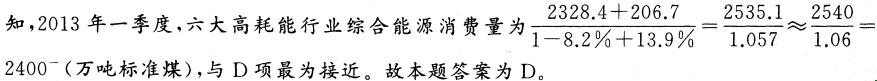 2013年一季度,六大高耗能行业综合能源消费量约为()万吨标准煤。