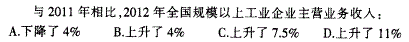 根据文字第二段可知,2012年该省规模以上工业企业主营业务收入同比增长3.5%,比全国低7.5个百分点,则所求为3.5%+7.5%=11%,选D。