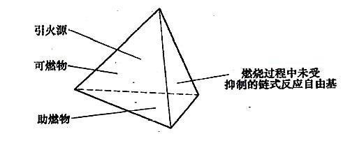 用着火四面体来表示燃烧发生和发展的必要条件时,“四面体”是指可燃物、氧化物、引火源和( )。