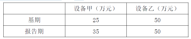 某工程项目报告期需采购设备甲2 台,设备乙1 台。报告期、基期设备价格如下表所示