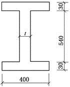 某高层钢结构,按8度抗震设防。结构设中心支撑,支撑斜杆钢材采用Q345(fy=325N/mm2),构件横断面如图所示。则满足腹板宽厚比要求的腹板厚度t最接近于( )mm。提示:按《高层民用建筑钢结构技术规程》(JGJ 99—98)设计。