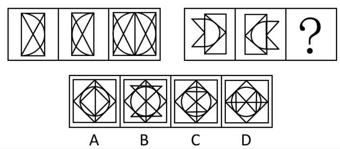 从所给的四个选项中,选择最合适的一个填入问号处,使之呈现一定的规律性:
