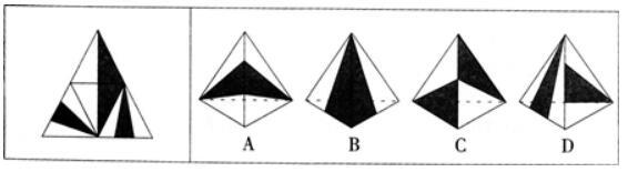 两个含等腰三角形阴影的面不应以底边相接,排除A;两个含直角i角形阴影的面应以较短的直角边相接,排除B、。选择D。
