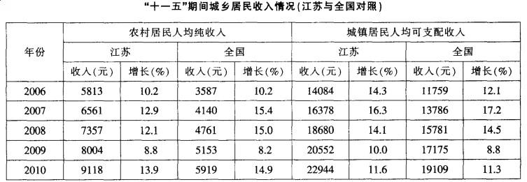 A.全国农村居民人均纯收入B.江苏农村居民人均纯收入C.全国城镇居民人均可支配收入D.江苏城镇居民人均可支配收入