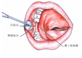 下牙槽阻滞麻醉时,注射针往后外方与中线所成角度为()