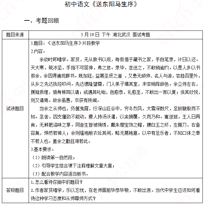 【答辩题目解析】1.怎么看待你抽中的题目?2.作者家贫嗜学,乐以忘忧,在老师面前毕恭毕敬,不敢出言。当代中学生应该如何看待这种学习态度和从师尊师方式?