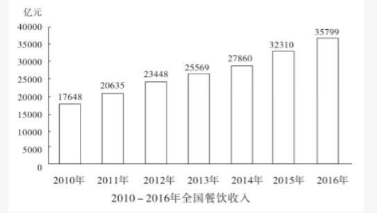 2016年全国餐饮收入35799亿元,同比增长10.8%,餐饮收入占社会消费品零售总额的比重为10.8%。2016年全社会餐饮业经营单位为365.5万个,同比下降8.2%;从业人数为1846.0万人,同比增长5.7%。