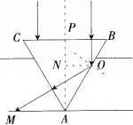 玻璃的折射率为1.5,可得临界角小于45。。经过第一次折射时,由于入射角等于零,所以折射角也是零,折射光线不发生偏折。当第二次折射时,由于入射角等于60。,光线发生全反射,此时反射光譬恰好垂直射出。因为0N等于r,则0A等于2r,由于∠MOA=∠AMO=300,所以AM等于2r。故选C。