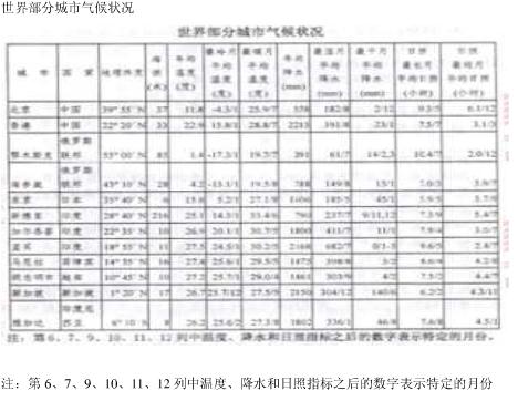 根据下表,回答问题: 表中最冷月与最暖月温差在20度以上的城市有多少个?