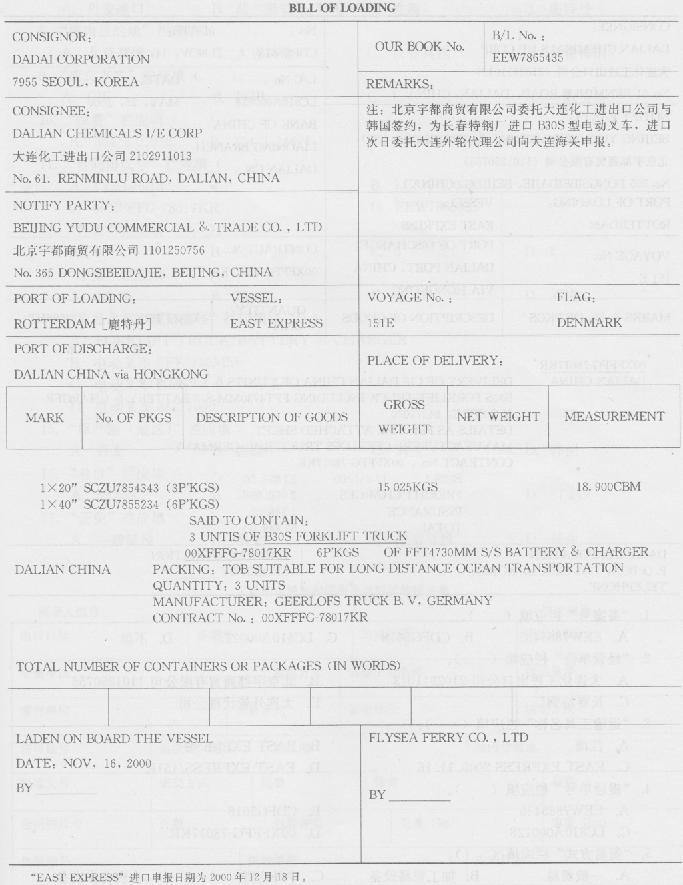 (2001年) “原产国(地区)”栏应填( ). A.丹麦