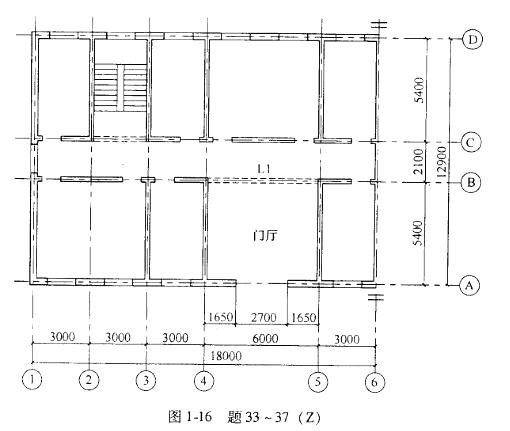 某多层砖砌体房屋,底层结构平面布置如图1-16所示,外墙厚370mm,内墙厚24