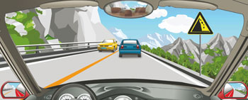 右侧这个标志提醒注意左侧有落石危险。