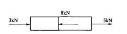 解 轴向受力杆左段轴力是─3kN,右段轴力是5kN。