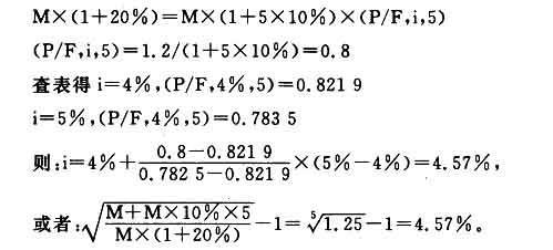 债券的收益率是指债券的本金和利息流入的现值等于其购买价格时的貼现率。由于在本题中属于溢价购买,所以,购买价格等于其面值(1+20%)。计算收益率是求解含有贴现率的方程,即: 现金流出的现值=现金流入的现值。 假设面值为M,收益率为i,则有: