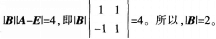 设矩阵,E为二阶单位矩阵,矩阵8满足BA=B+2E,则=()。A、4 B、2 C、0 D、1