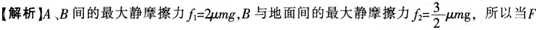 逐渐增大至f2时,B与地面先发生相对滑动,A项错误;F继续增大,AB间摩擦力也逐渐增大,当AB间摩擦力增大至f1时,AB恰好发生相对滑