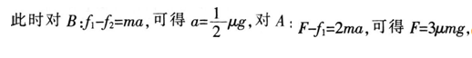 如图所示,A、B两物块的质量分别为2m和m,静止叠放在水平地面上。A、B间的动摩擦因数为μ,B与地面间的动摩擦因数为1/2μ,最大静摩擦力等于滑动摩擦力,重力加速度为g,现对A施加一水平拉力F,则下列说法不正确的是( )。