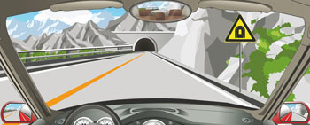 右侧这个标志提醒前方是单向行驶隧道。
