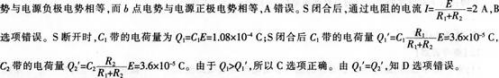 正确的是( )。A.开关S断开时,a,b两点电势相等 B.开关S闭合后,a.b两点间的电流是3A C.开关S断开时,C1带的电荷量比开关S闭合后C1带的电