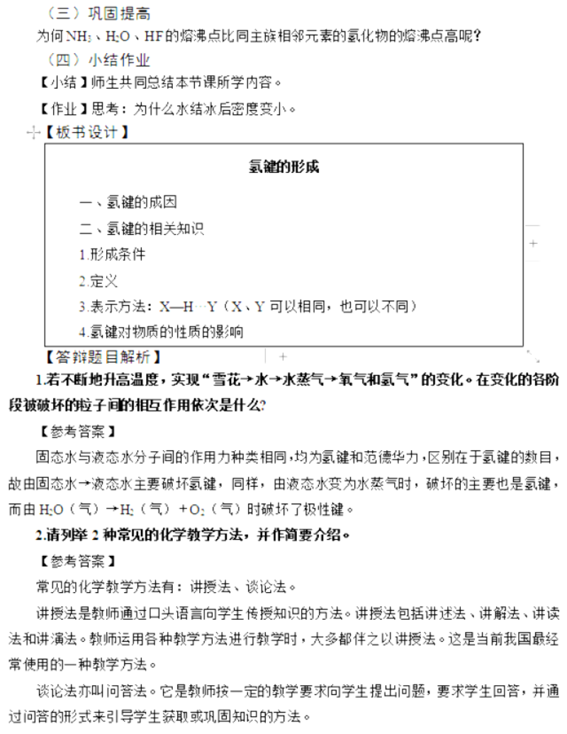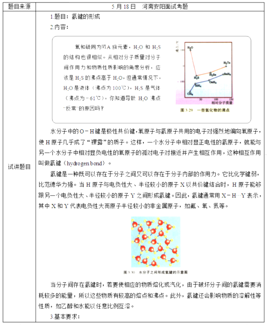 高中化学《氢键的形成》 一、考题回顾 教师提问:既然氢键是一种较