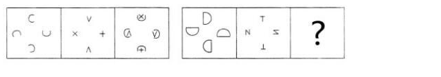 D【解析】左边第一个图逆时针旋转一个方位,第二个图顺时针旋转一个方位,从而得到第三个图形。依此,答案选择D。