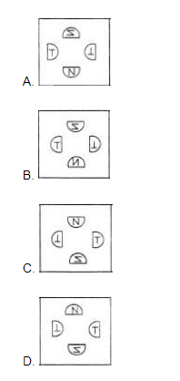 【解析】左边第一个图逆时针旋转一个方位,第二个图顺时针旋转一个方位,从而得到第三个图形。依此,答案选择D。
