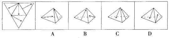 B以指向角的箭头作为突破口,B为正确答案,右侧面是题图中下方的三角形。