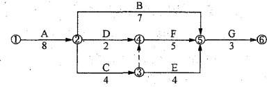 工作D的最早结束时间为第10天,工作F的最早开始时间为第12天,工作D的自由时差= 12 - 10 = 2(天)。