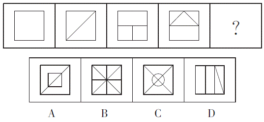B观察图形内部线条数,依次为0、1、2、3、(4)。故本题选B。