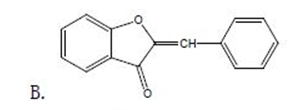 A为花色素类,属于黄酮类化合物;B橙酮类,C的化学结构为东莨菪碱,因此属于生物碱类化合物;D为环烯醚萜醇,属于萜类,E属于黄酮醇类。
