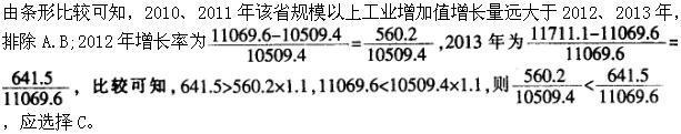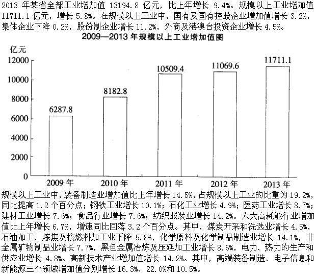 2009-2013年该省规模以上工业增加值增幅最小的一年是:( ) A.2010年 B.2011年 C.2012年 D.2013年2009-2013年