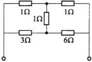 考察“Y-△”变换的应用,对称结构经过变换后有RΔ=3RY,因此得到该端口的等效电阻为:R=3//[(3//3)+(3//6)]=21/13Ω[img]/upload/tiku/37/8943329_1.png[/img]
