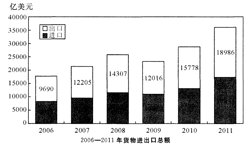 2011年我国全年货物进出口总额36421亿美元,比上年增长22. 5%。其中,