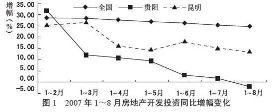 根据下图提供的信息回答 2007年1~4月,贵阳房地产开发投资增幅比20