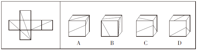 左边是给定纸盒的外表面,右边哪一项能由它折叠而成?