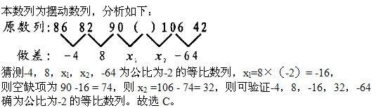 86,82,90,( ),106,42。A.86 B.72 C.74 D.110