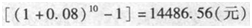 张先生在未来10年内每年年底获得1000元,年利率为8%,则这笔年金的终值为14587.56元。