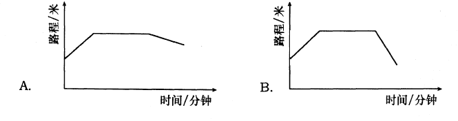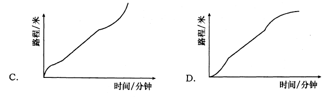 小明起跑速度为150米/分钟,以10米/分钟2的加速度匀加速跑了5分钟后又匀速跑了10 分钟,之后又以5米/分钟2的加速度匀减速跑了5分钟,则以下哪个图形...