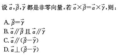 C将右边式子移到左边,α×β-α×γ=0,变形得α×(β-γ)=0,则α//(β-γ)。