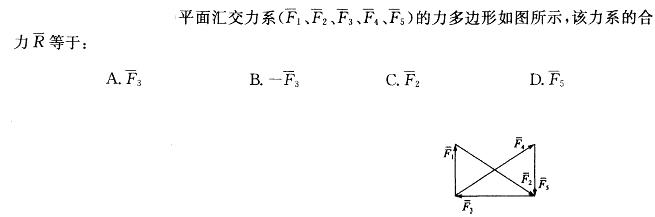 B提示 平面汇交力系几何法合成,各分力首尾相连,力多边形的封闭边是合力。