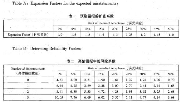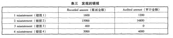 John also determined the following information :Tolerable misstatement RMB 44000Expected misstatement RMB 5000Recorded amount of account receivable RMB 720000Risk of incorrect acceptance 5% . (约翰也制定了下列信息:可容忍错报 RMB 44000预计错报 RMB 5000应收账款账面余额 RMB 720000误受风险Table C : Misstatements found :