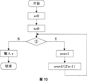 计算s=1+1/3+1/7+1/15+……的流程图如图10所示,若要计算前5项的和,①处应该输入的判断条件是()。