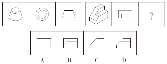 每组第一个图形是立体图形,第二个图形是立体图形的俯视图,第三个图形是立体图形的主视图。故本题选D。