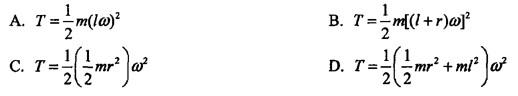 如图4-65所示,忽略质量的细杆OC=l,其端部固结均质圆盘。杆上点C为圆盘圆心。盘质量为m。半径为r。系统以角速度ω绕轴O转动。系统的动能是( )。
