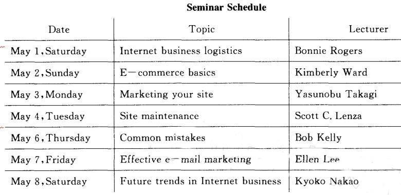 Whatisthemaintopicoftheseminar? A.Businesslogistics B.Internet’...
