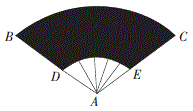 如图所示,扇形纸扇完全打开后,外侧竹条 AB、AC 夹角为 120°,AB 的长为 30,贴纸部 分 BD 的长为 20,则贴纸部分的面积为: